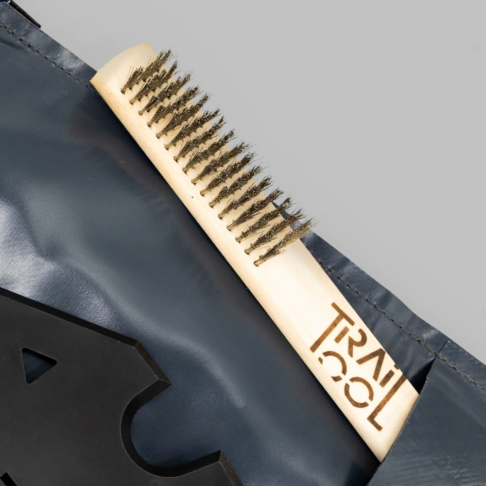 Very practical wooden brush for cleaning the Tools before storing them in the bag!